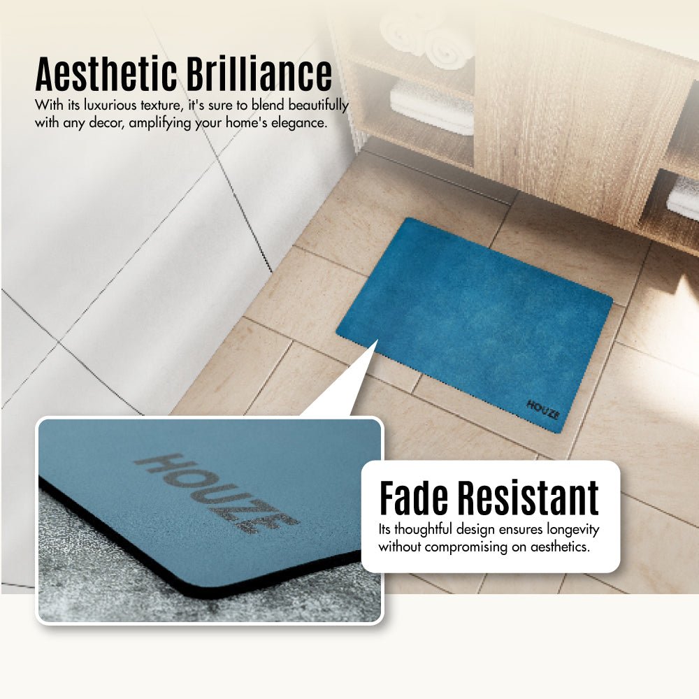 Imagine a mat meticulously designed with a fusion of 100% Polyester and Polyurethane. supported by a dependable 100% SBR backing. This is different from your ordinary mat. Your statement of elegance is the HOUZE Diatomite Mat (Large) and Soft Diatomite Absorbent Mat in different colours. Its hard-wearing nature stands tall in bustling spaces. but its true wonder lies in the diatomite. A natural wonder. diatomite is celebrated for its unparalleled absorbency and sustainable charm.