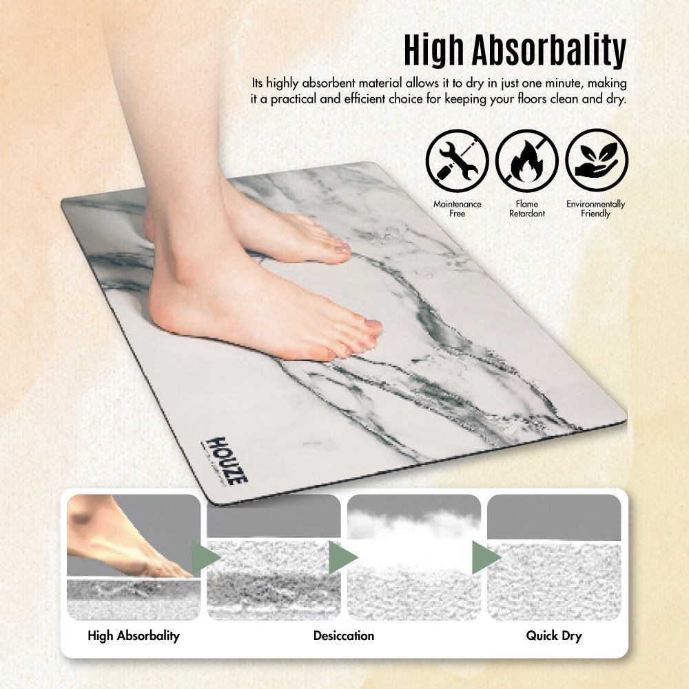 Are you worried about slippery floors in your bathroom and swimming pool areas? Worry not! Introducing the HOUZE Diatomite Ultra Absorbent Mat (Large) and Soft Diatomite Absorbent Mat with a captivating Marble finish – a true blend of style and efficiency. Every corner and detail of this mat is woven with precision. bringing function and flair to your home.