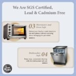 Our tableware are Lead and Cadmium Free. Microwave Safe. Oven Safe and Dishwasher Safe.