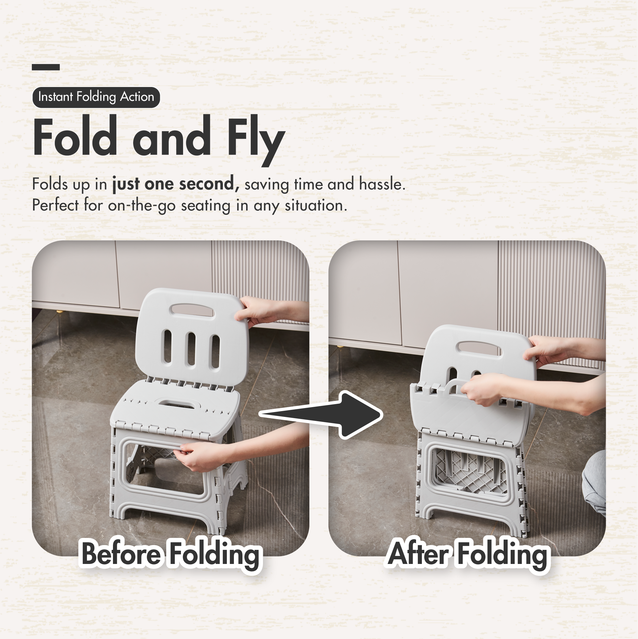 PORTASTOOL – Portable Sturdy Folding Stool with Backrest | High Backrest