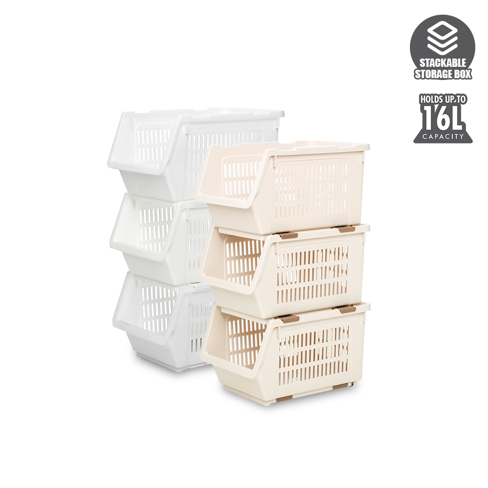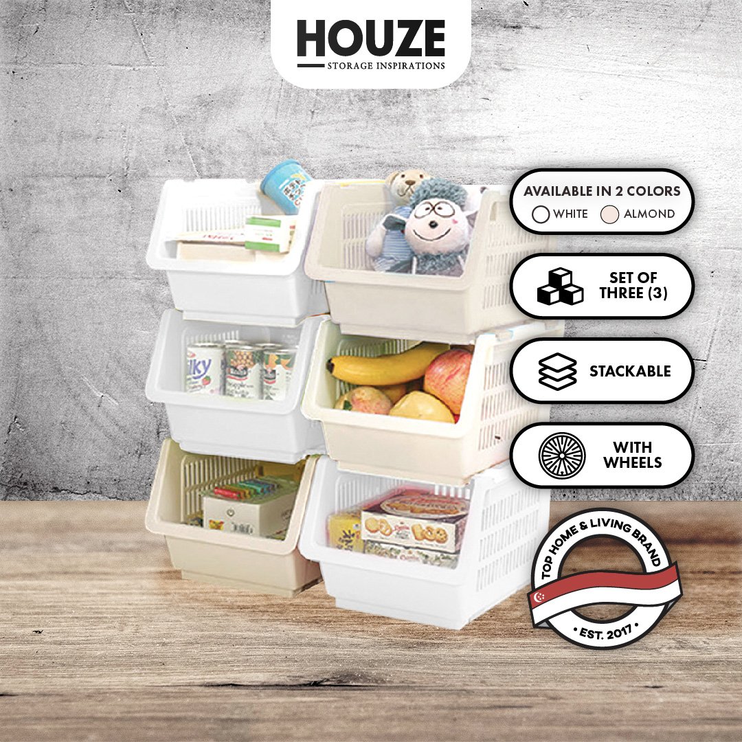 HOUZE Stackable Multi Purpose Rectangle Basket (Dim: 34.5x24x20cm)
