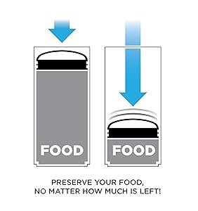 - Innovative – The lid is designed to be able to push all the way down to the base; allows you to store any amount of food. little or full. into the container without worries about air affecting your food.
