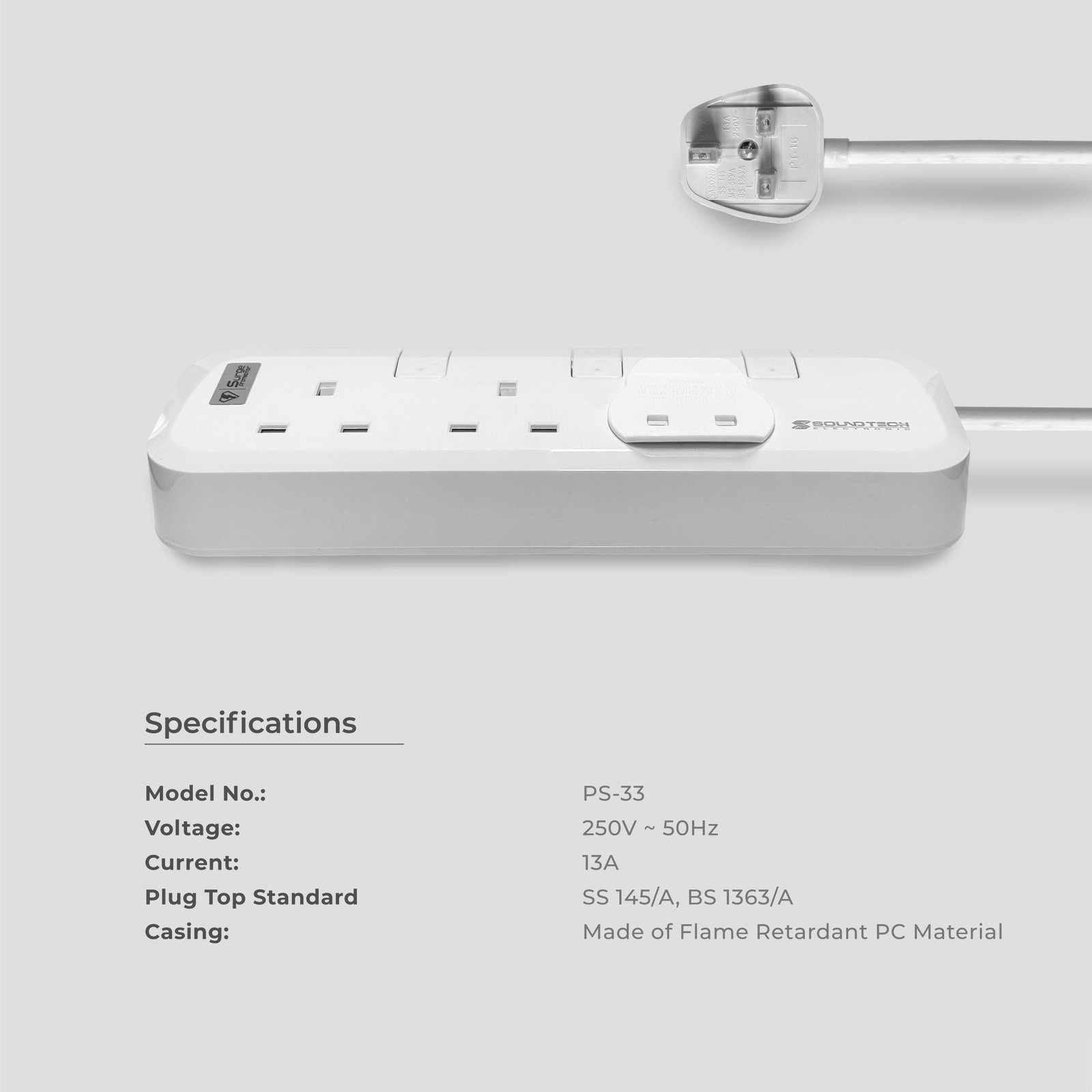 SOUNDTECH – 3Ways Power Indicator Extension Socket 3 Metres (SET OF 2). Black | White